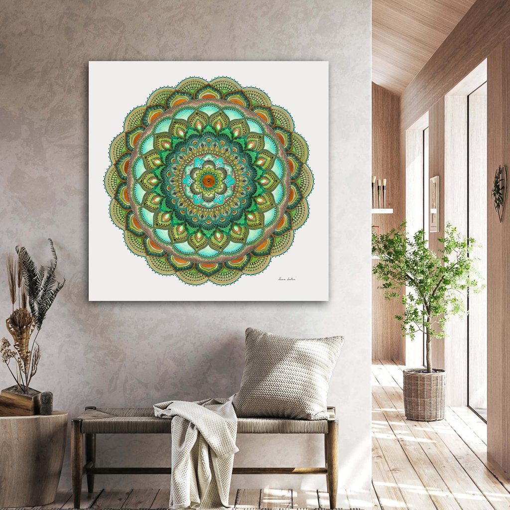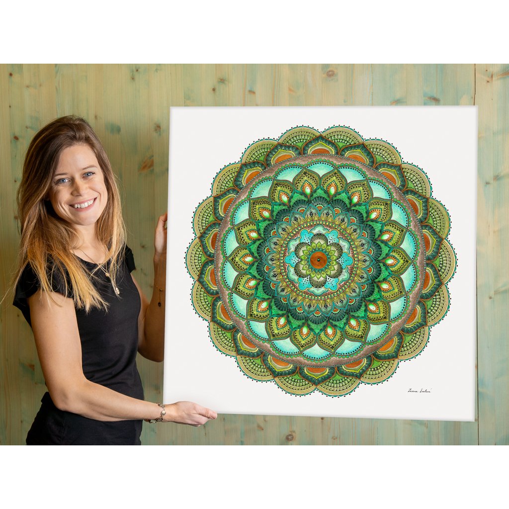 Druhá varianta mandal je reprodukce na plátno. Toto provedení je vhodné pro ty, kdo hledají hotové řešení, které je možné okamžitě pověsit na zeď.